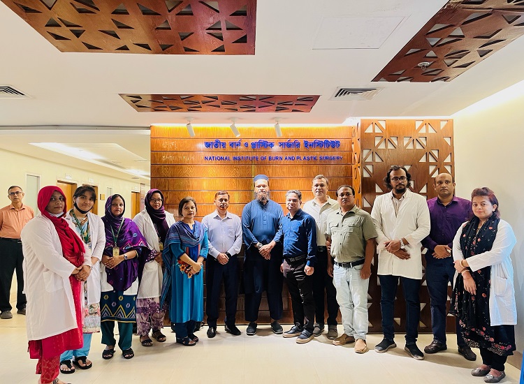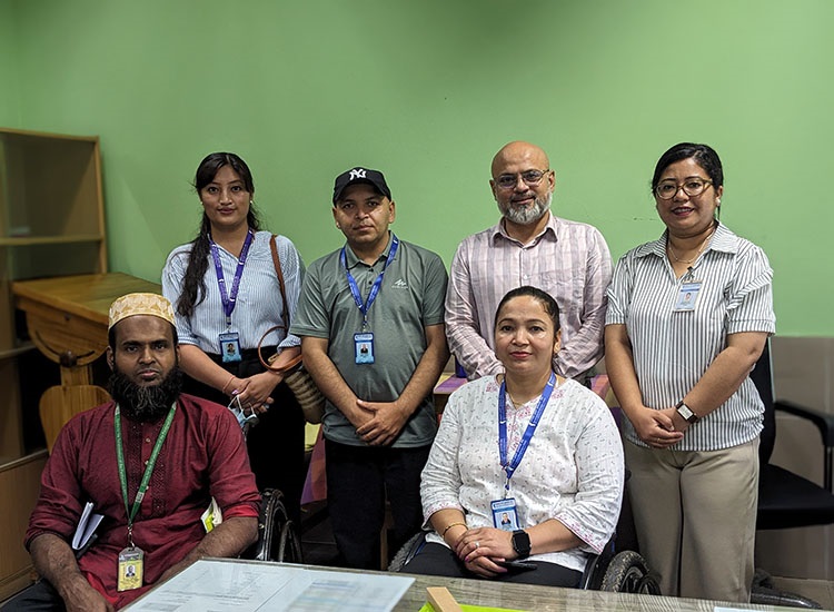 A delegation from the Spinal Injury Rehabilitation Center (SIRC) of Nepal visited CRP Savar on June 21, 2025. The team includes a physiotherapist, a peer counselor, a social worker, and a program manager.