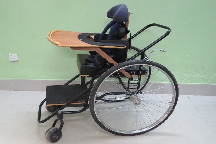 In CRP we generally deliver basic level wheel chair according to needs of our patients from our production house. But sometimes we have to modify our wheelchair according to needs of the patients. If any child patient has to use small wheelchair than it is necessary to push from child parents or other carer.