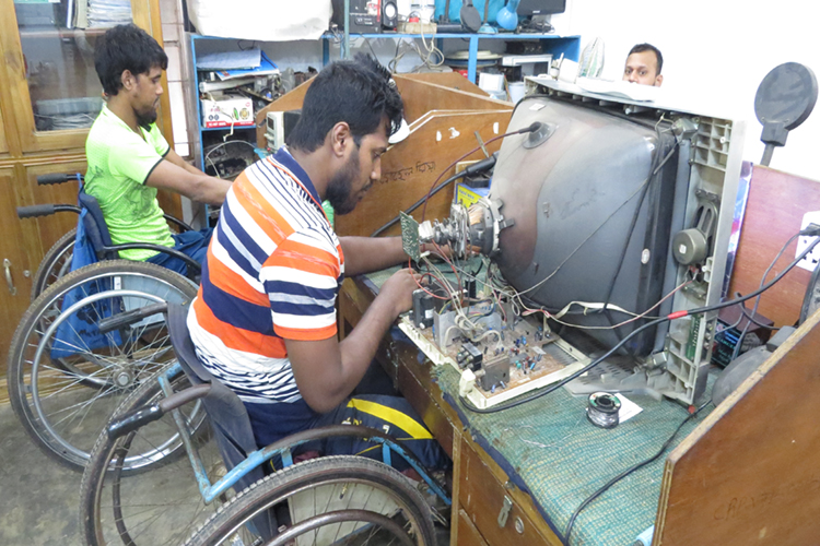 CRP’s Madhab Memorial Vocational Training Institute (VTI) was established in 1999 and affiliated in 2003 to the “Bangladesh Technical Education Board (BTEB)”. Most of those suffering from spinal cord injuries and other physical difficulties such as Polio, Visual Impaired, Speech Impaired, amputees, etc. are from poorer backgrounds and work as manual laborers. Many patients at CRP are unable to return to their previous job after suffering paralysis. If a spinally injured person cannot earn a living to support his or her family, the physical and emotional rehabilitation at CRP will be of little value. To address this need CRP runs vocational training projects which aim to enable trainees to live financially independent lives.